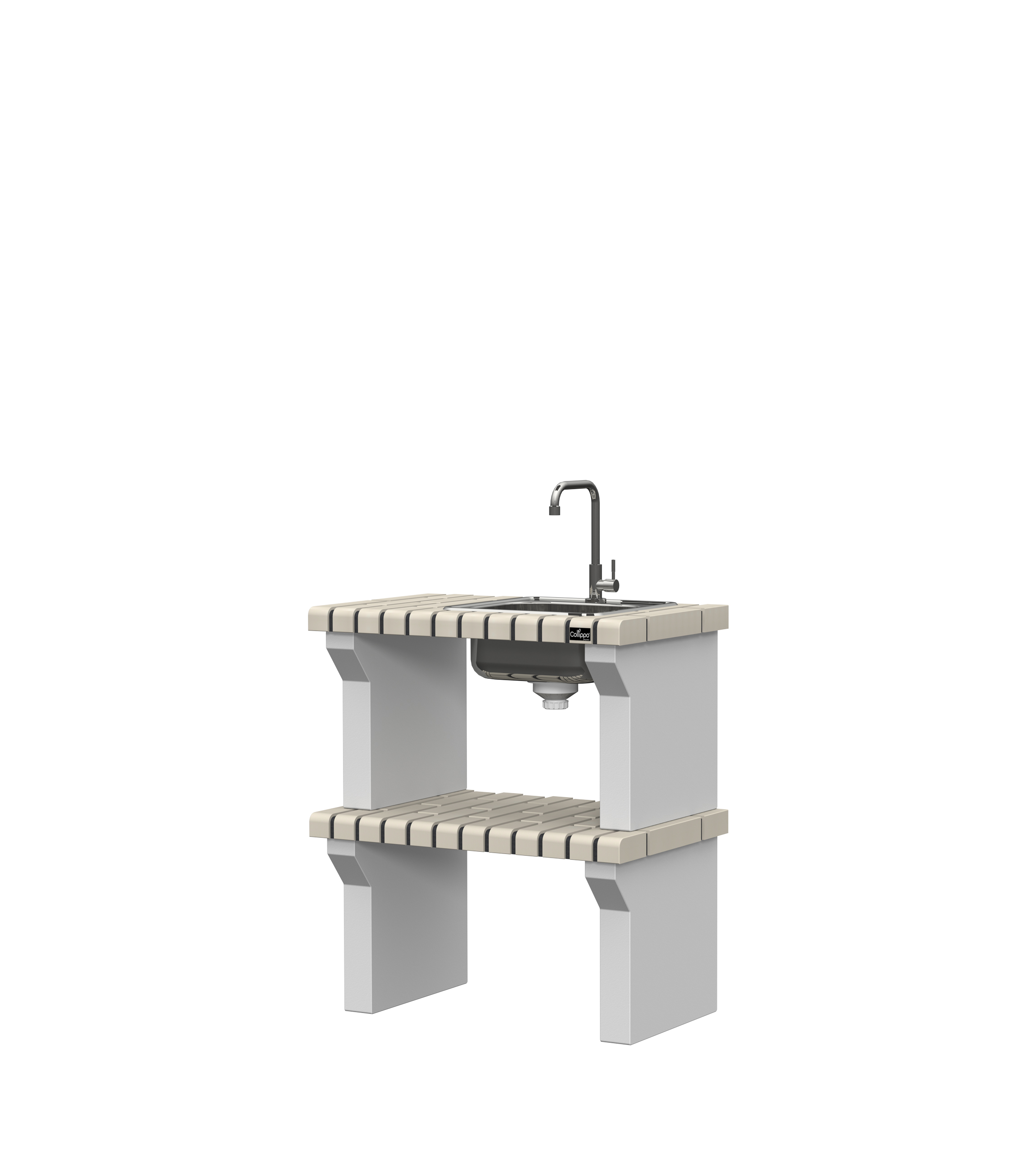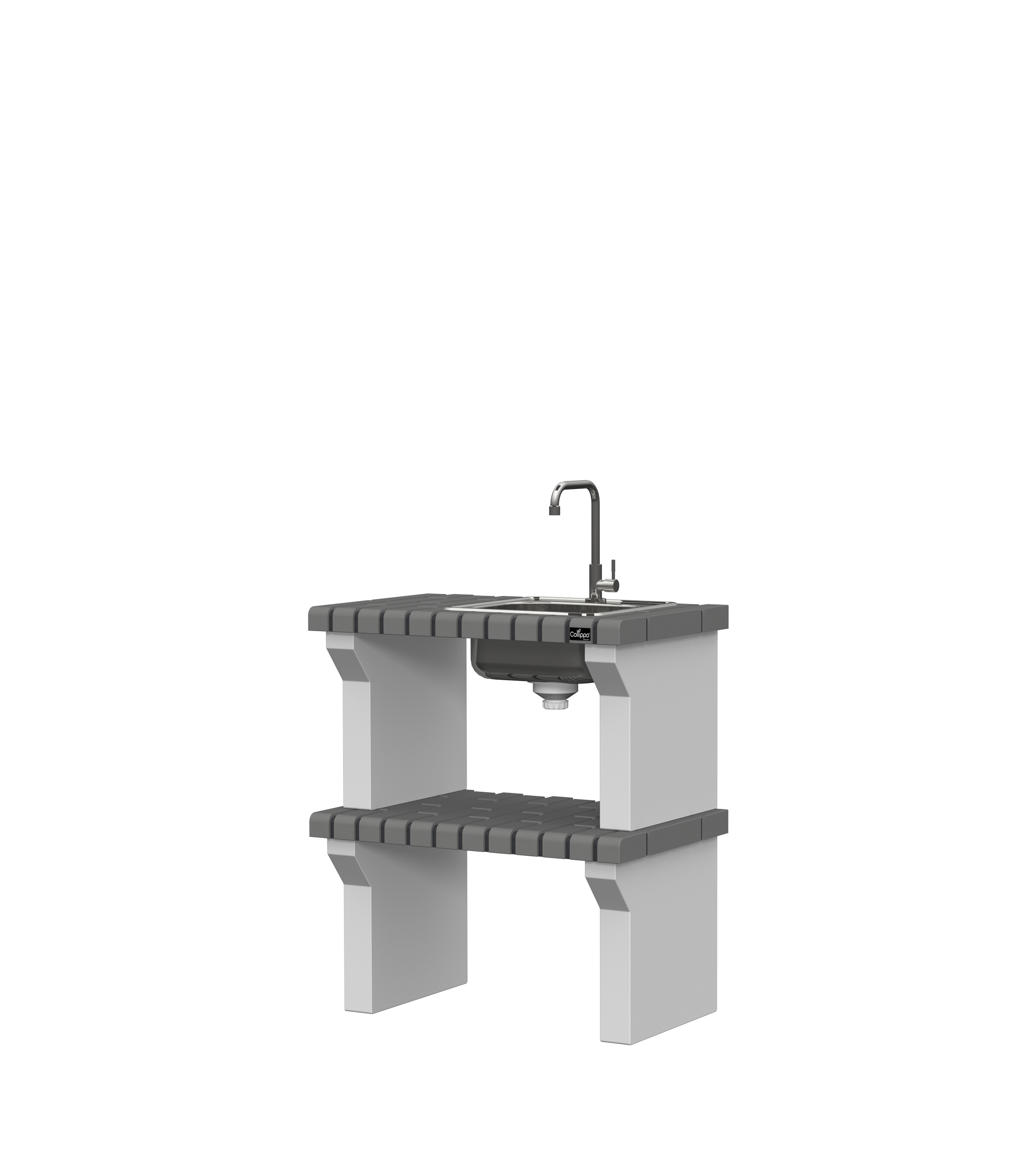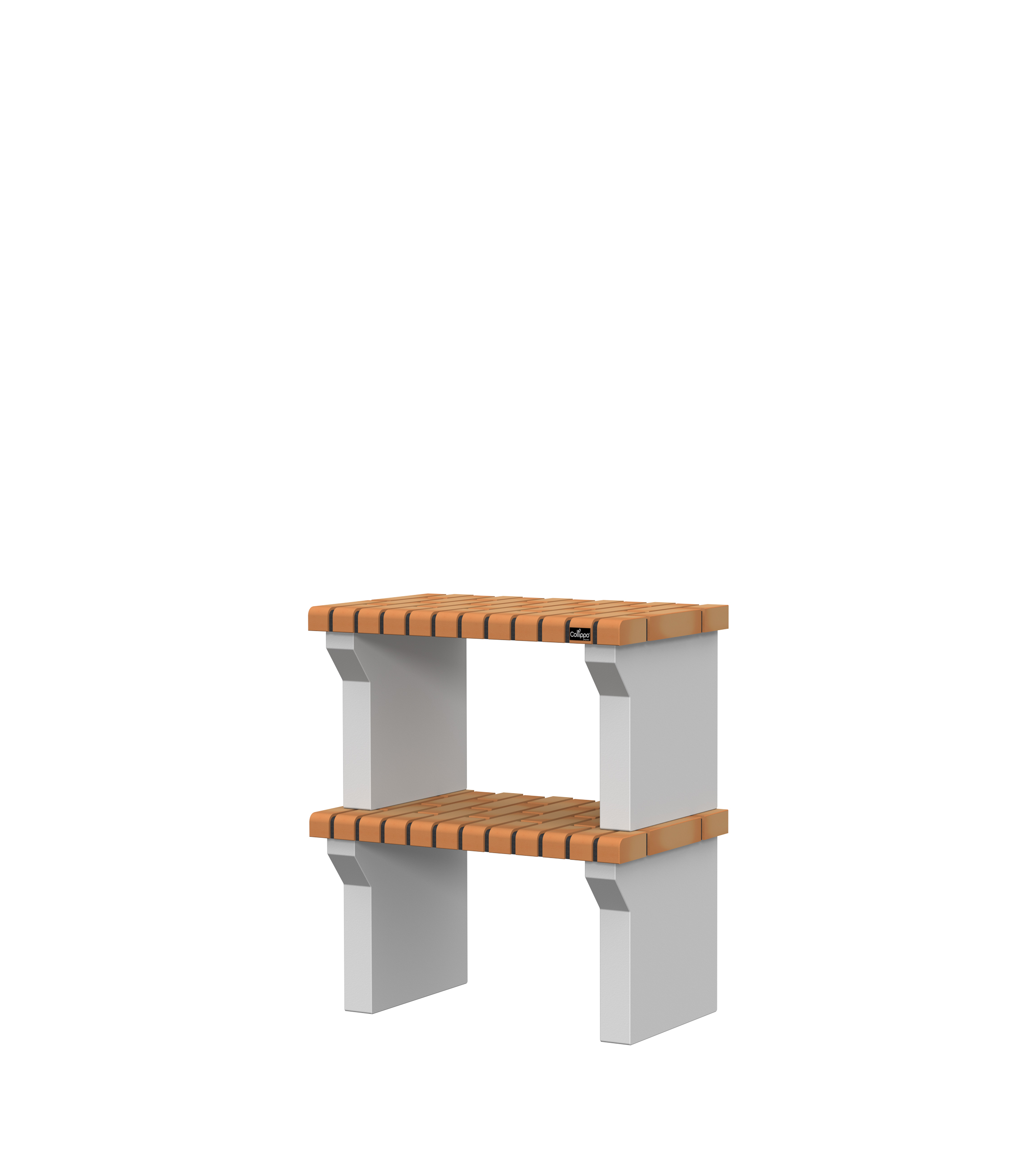 Micro betão cinzento liso e micro betão cinzento texturado; bancadas em tijolo