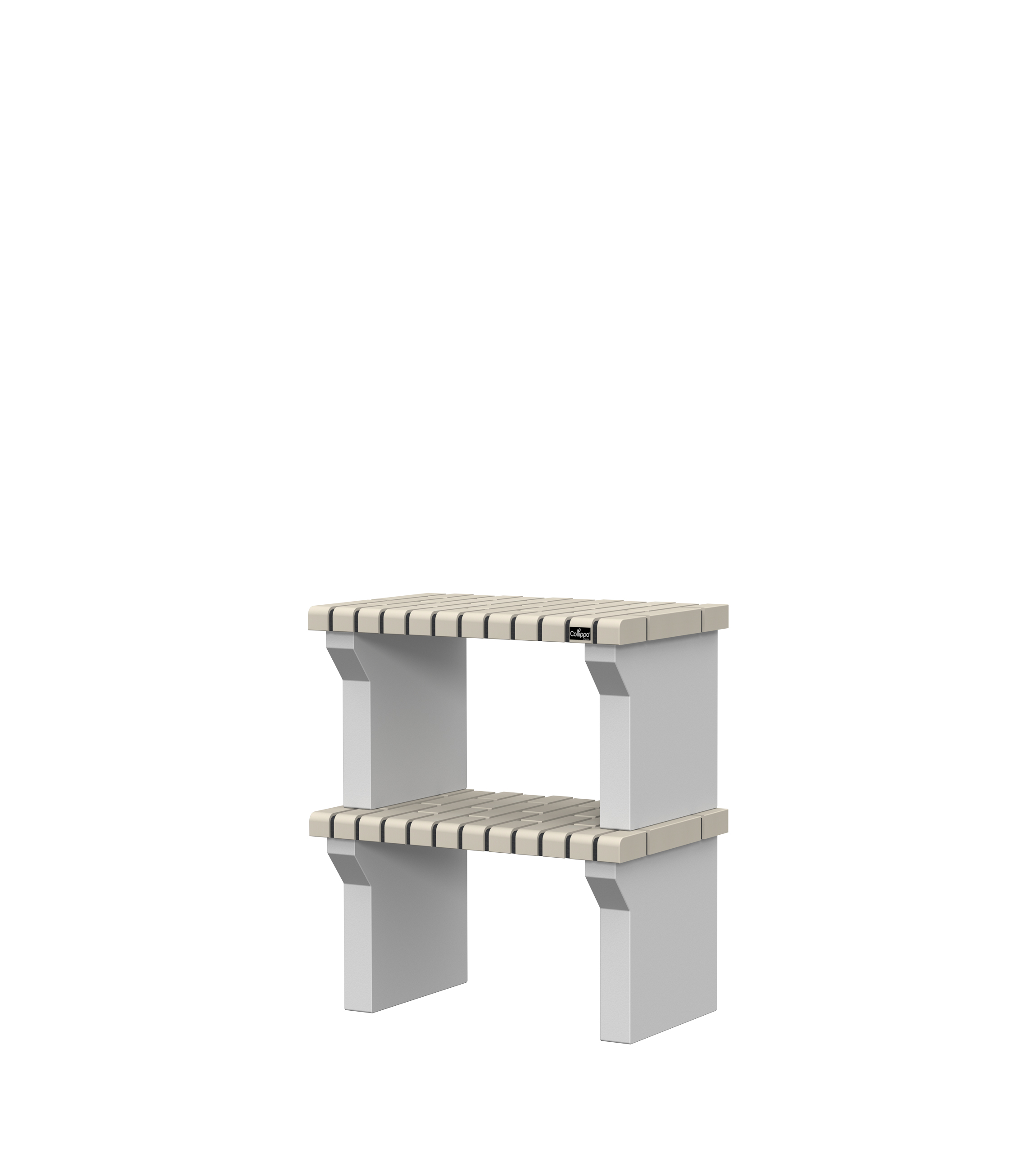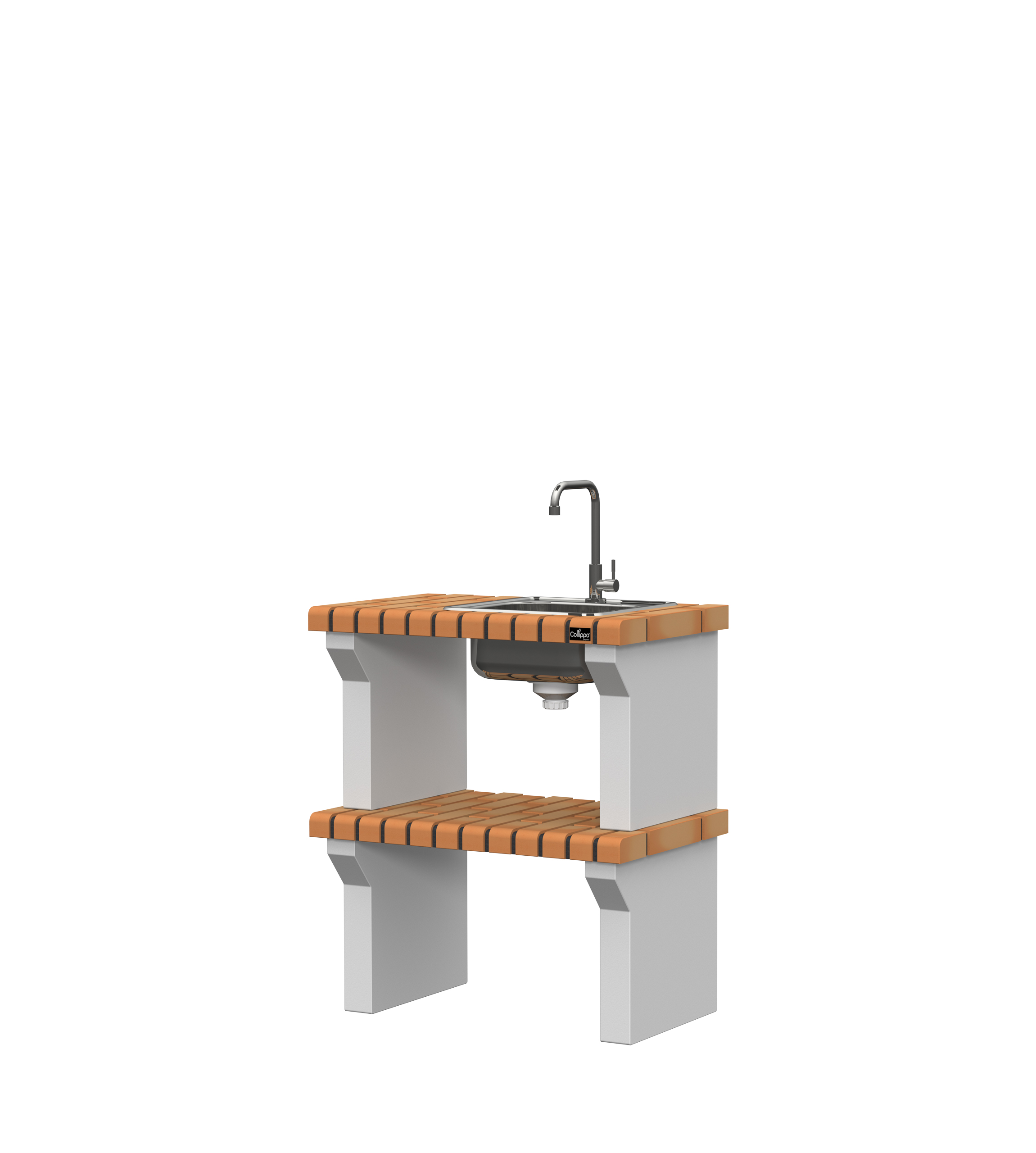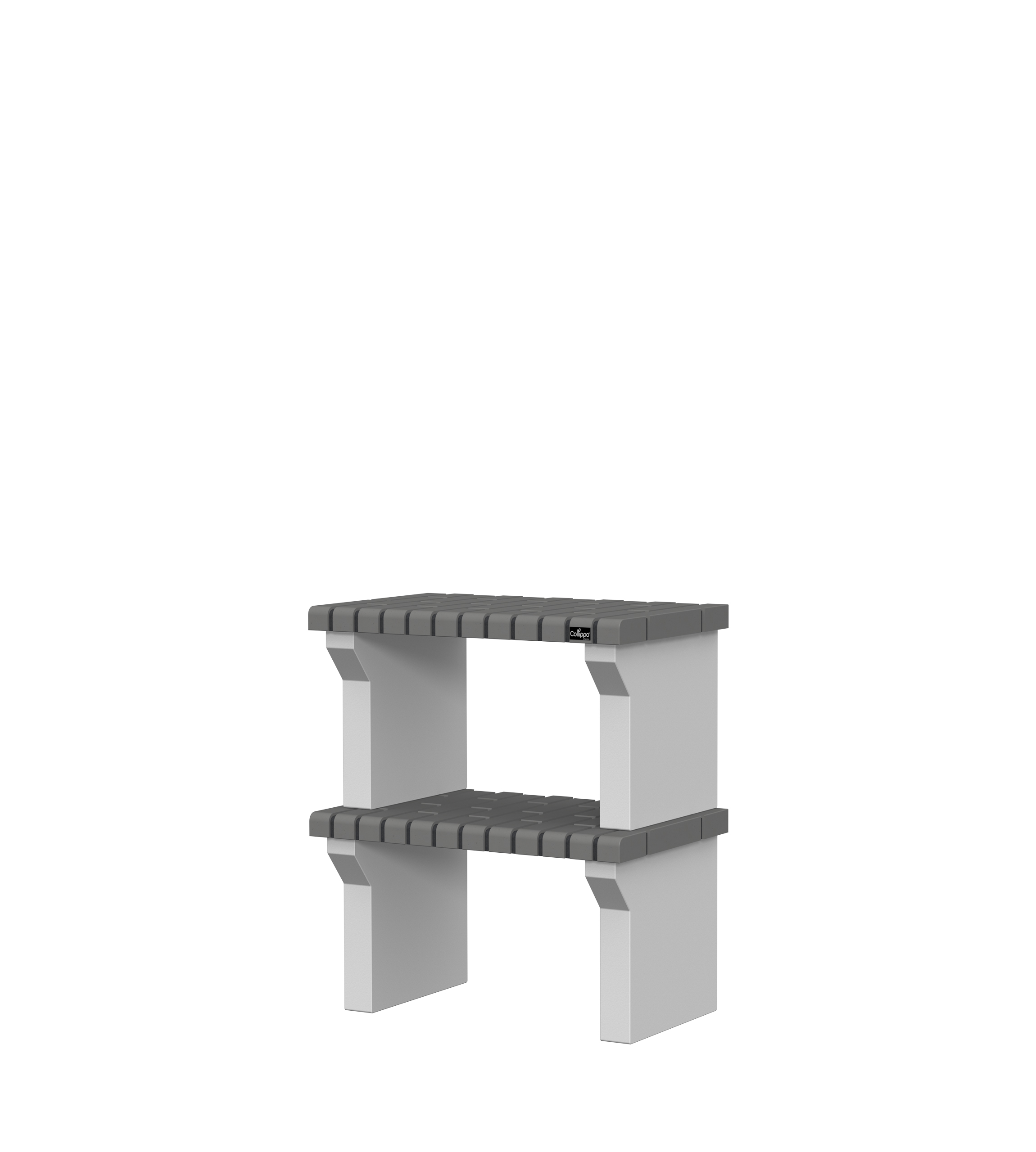 Micro betão cinzento liso e micro betão cinzento texturado; bancadas em tijolo